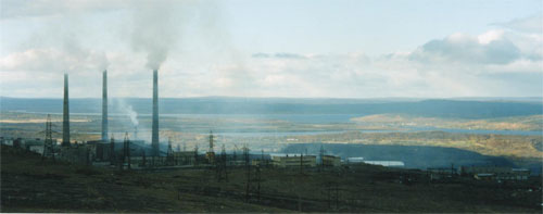 Nikkelin kaupungin sulattamo Venäjällä