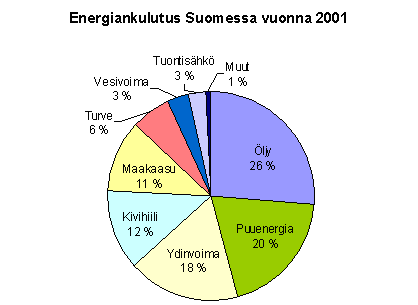 Suomessa käytettävästä energiasta vajaa kolmasosa saadaan omasta maasta puun, turpeen, veden, tuulen, auringon, biokaasun ja maalämmön avulla. [2]